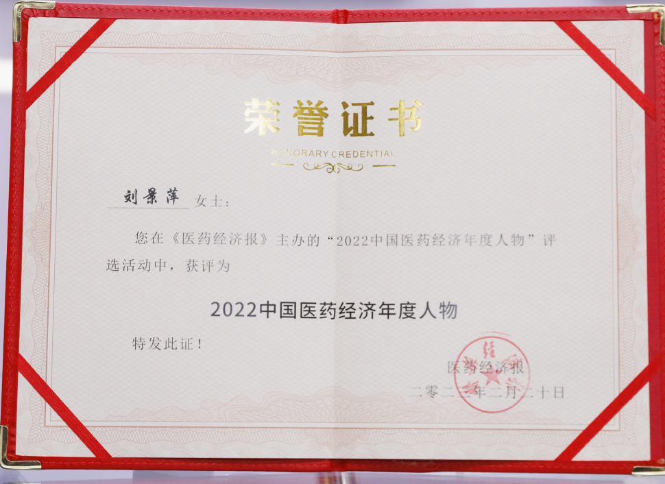 20日,2022中国医药经济年度人物榜单隆重揭晓,尊龙凯时药业集团刘景萍董事长当选“2022中国医药经济年度人物”。